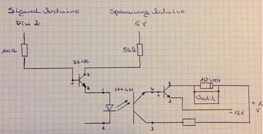 Nach einigen Abenden stand eine kleine schwarze Kiste vor mir und wartete darauf, Innbetrieb genommen zu werden. Also Software drauf und Kopf einschalten......und siehe da, die kleine Kiste schaltete wie gewünscht die drei Magnetventile.